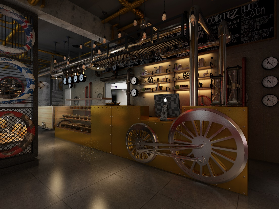 2、墙壁设计中体现工业元素